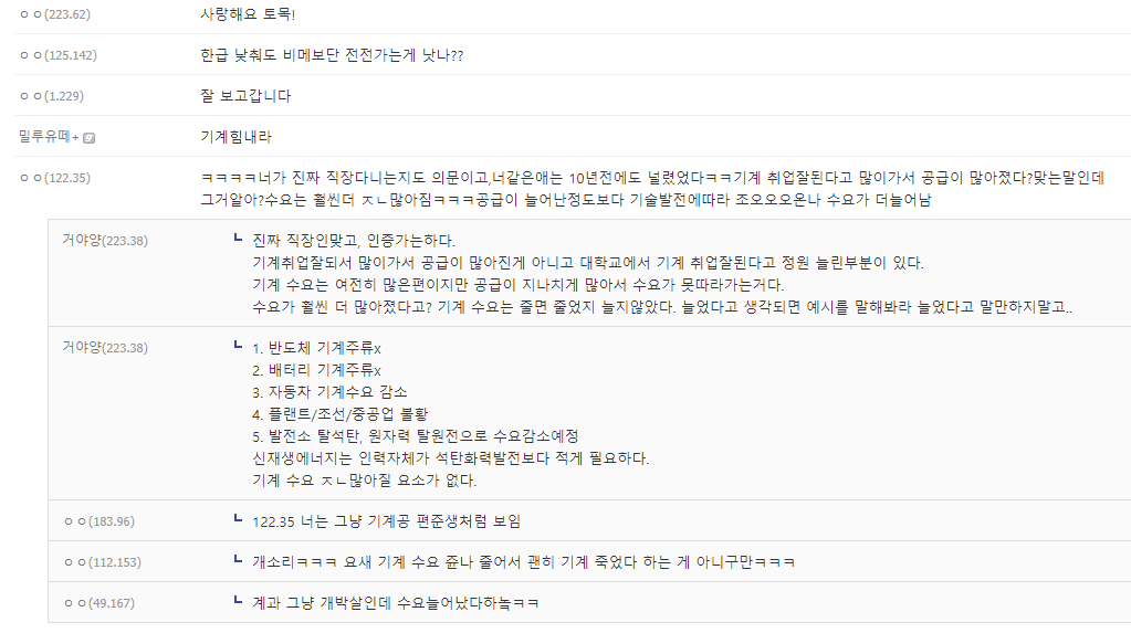 기계가 메인인 자동차/플랜트/조선/중공업을 보자. 자동차 업계에서 전자전기 비중은 높아지고 기계 비중은 줄고있고 플랜트 조선 중공업은.. 뭐 말 안해도 상황이 좋지 않다. 플랜트 조선 중공업으로 취업한다해도 여긴 근무지가 해외 및 지방 오지에 위치해있다.