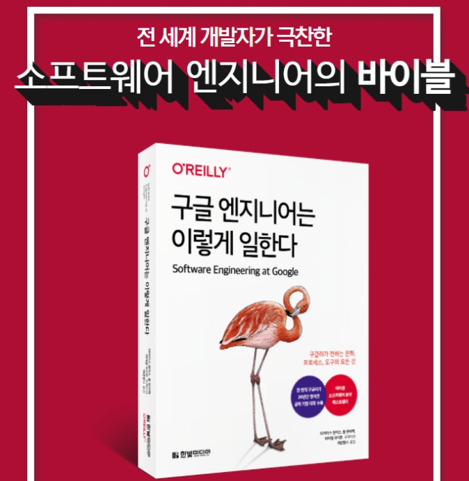저는 개발자에게 방향성을 제시해주는 책이라고 생각이 듭니다. 더 나은 소프트웨어, 서비스를 만들기 위한 구글 엔지니어들의 경험이 이 책에 담겨 있습니다. 이제 막 개발자가 된 저에게는 어려운 내용이 많았지만 시니어 또는 팀의 리더 분들이 이 책을 읽으면 더 많은 것을 느낄 수 있을 것 같습니다. 팀의 더 나은 개발 문화를 위해 고민하시는 분들이라면 이 책을 꼭 추천드리고 싶습니다.