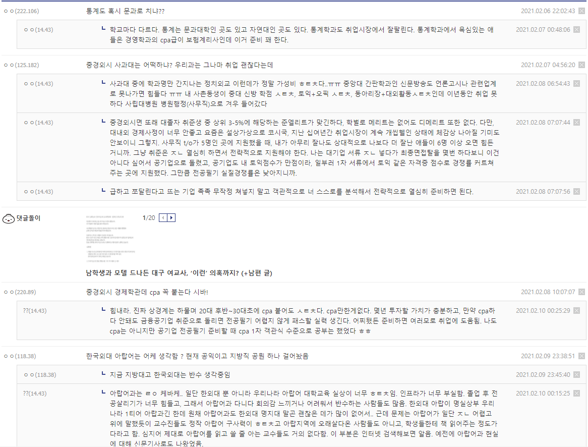 그리고 지잡대 뿐 아니라 인서울 중상위권 중경외시도 요즘 9급 공무원 합격하면 평균 이상이라는 게 현실이다.