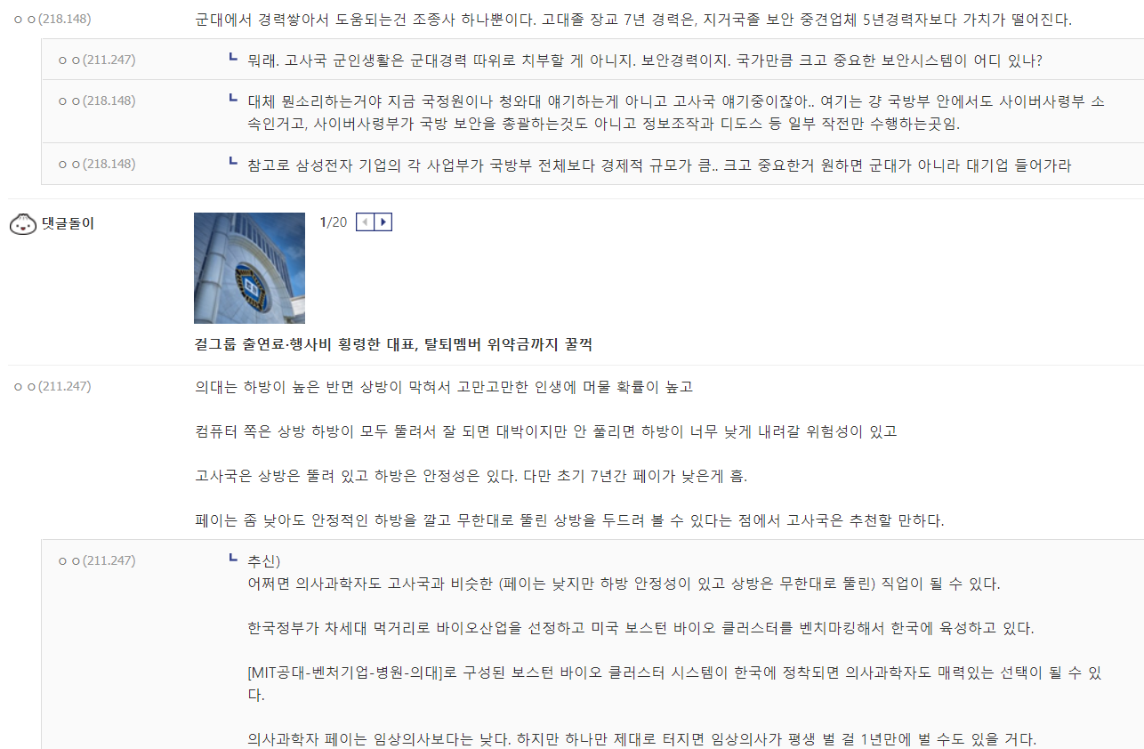 이러면 입시 끝난 학생의 입장에서 의대,설컴과 같이 두고 고민해야 할 때 너희라면 고사국이 추천할 만한 학과라고 생각하냐?