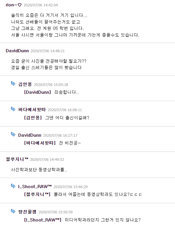 간혹가다가 사진학과를 고민하는 갤럼들을 많이봄