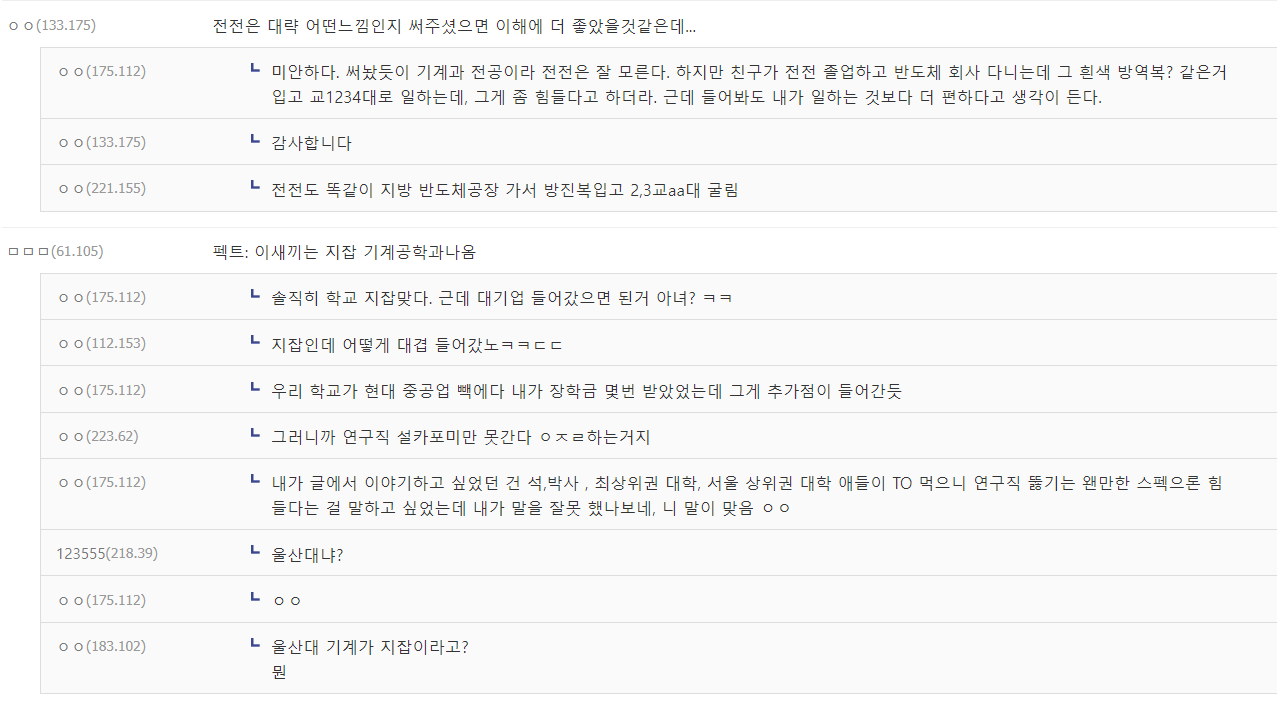 기계공학과 졸업생이 기계과 현실 알려줌