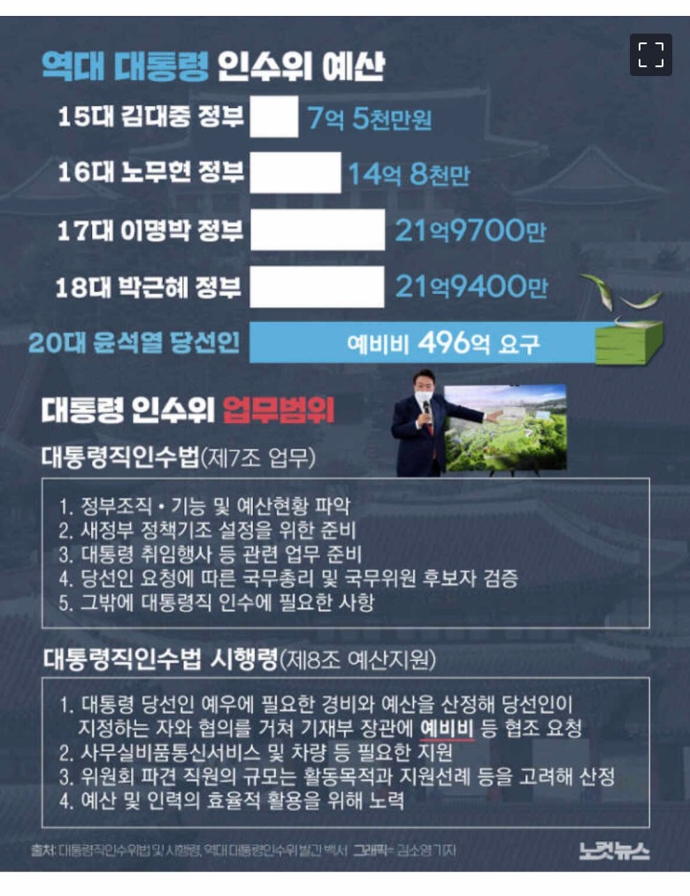 역대 대통령 인수위 예산을 나타내는 자료입니다.