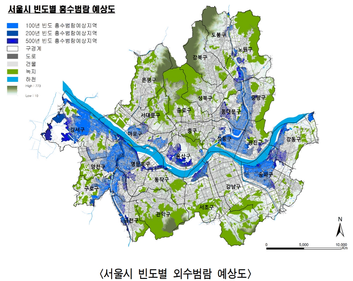 100년 빈도 홍수가 아니라 500년 빈도 홍수가 와도 끄떡 없음...지구 온난화로 서울이 물에 잠실 수준이 돼도 강남이 아니라 안양천과 잠실 걱정 먼저 해야 됨 ㄹㅇ...
