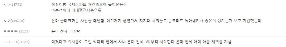 실제 은마 세입자중에 의사 전문직도 꽤 있기는 있음